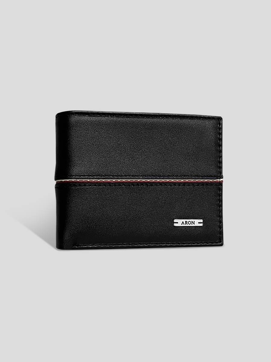 Billetera en cuero caprino con forro de poliéster, espacio para tarjetas, billetes y sencillera. Diseño funcional con accesorios metálicos en acabado níquel, ideal para el día a día.