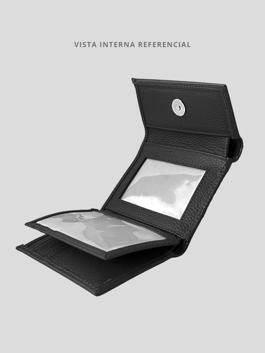 Billetera pequeña de diseño sofisticado y moderno, confeccionada en cuero vacuno. Su tamaño compacto permite llevar lo esencial con estilo y comodidad a cualquier lugar. Hecha en Perú por maestros artesanos.