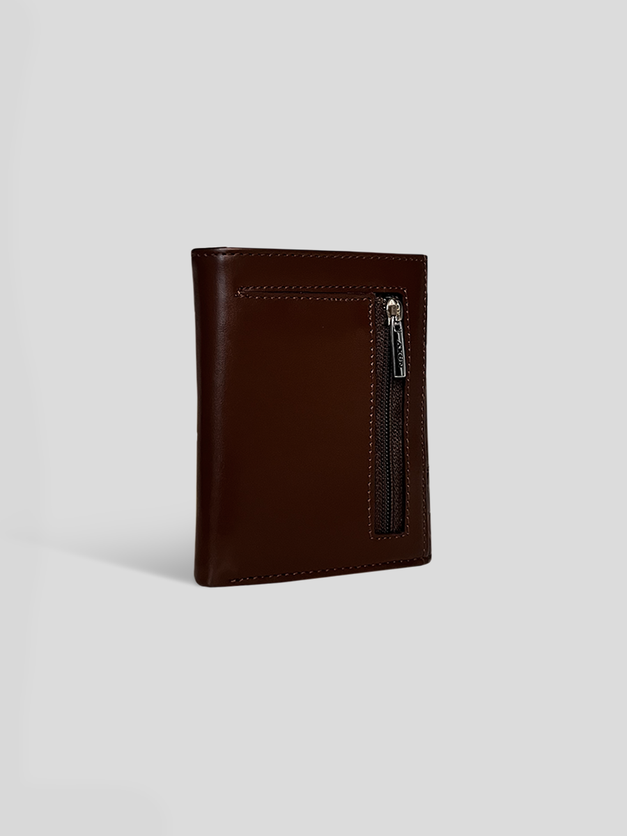 Esta billetera, elaborada en fino cuero y con una silueta clásica, combina elegancia y funcionalidad. Su estructura lisa y pulido firme realzan su estilo sobrio, mientras que sus compartimentos para billetes, tarjeteros y monedero exterior brindan practicidad. Un accesorio sofisticado para el día a día.