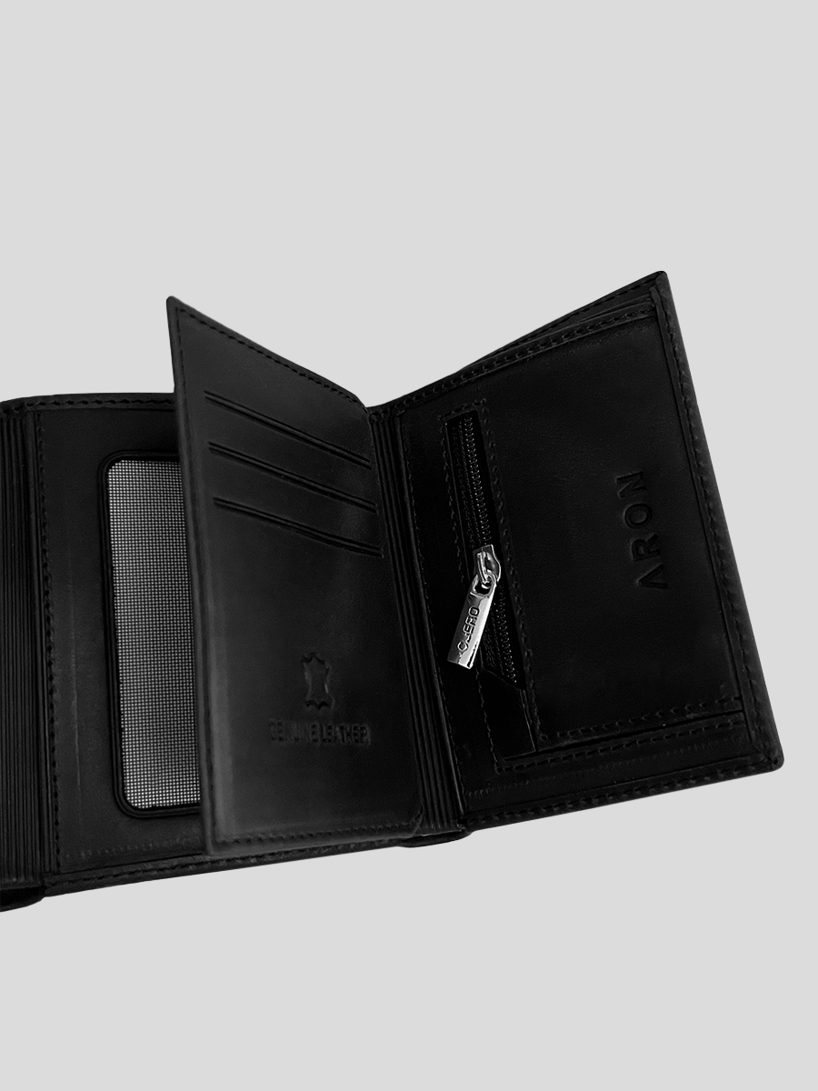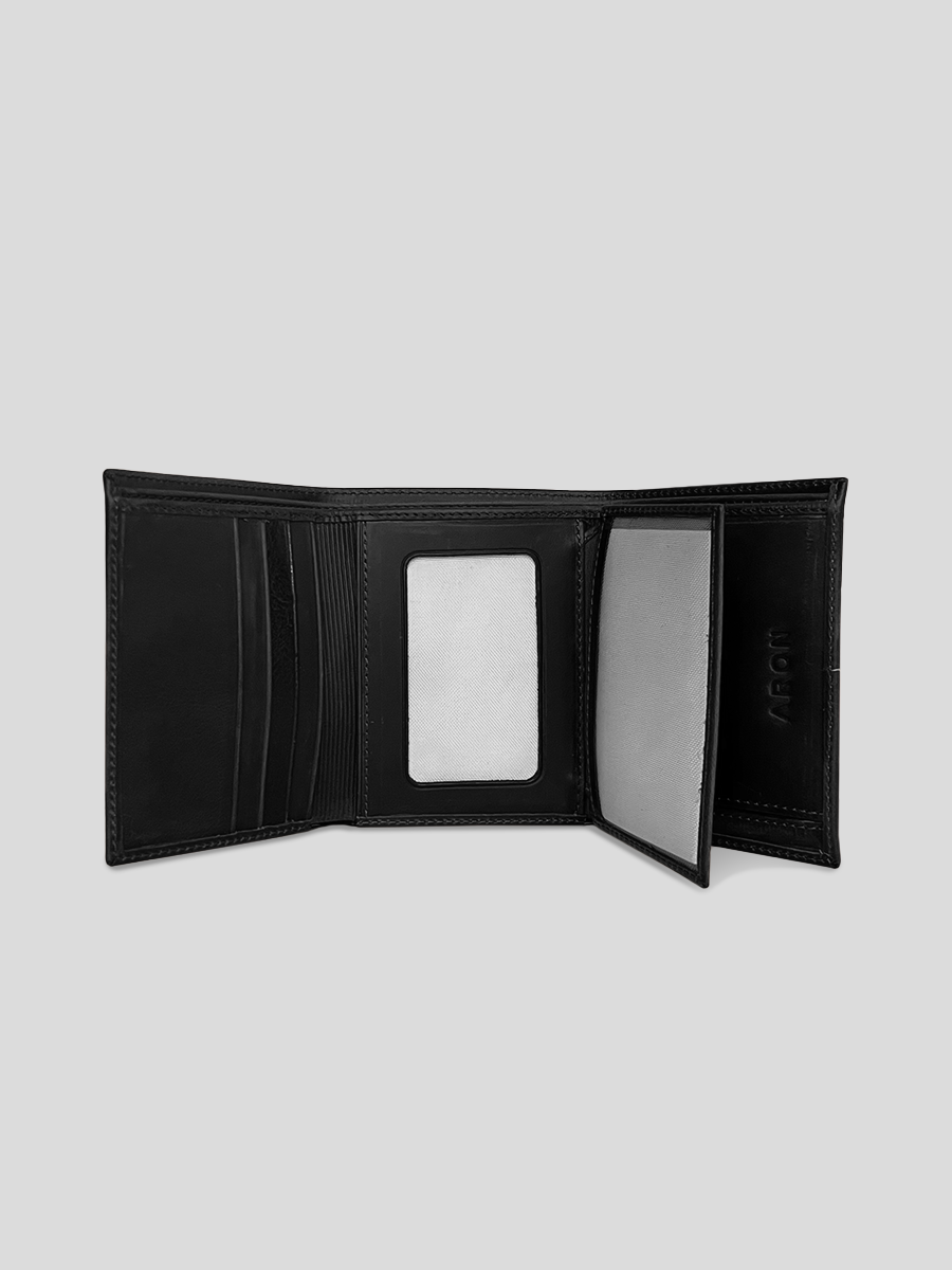 Elegancia en su máxima expresión. Billetera en cuero vacuno premium, con una textura natural que realza su autenticidad. Forro de poliéster, espacio para tarjetas, billetes y sencillera, y accesorios metálicos en acabado níquel para un toque sofisticado y duradero.