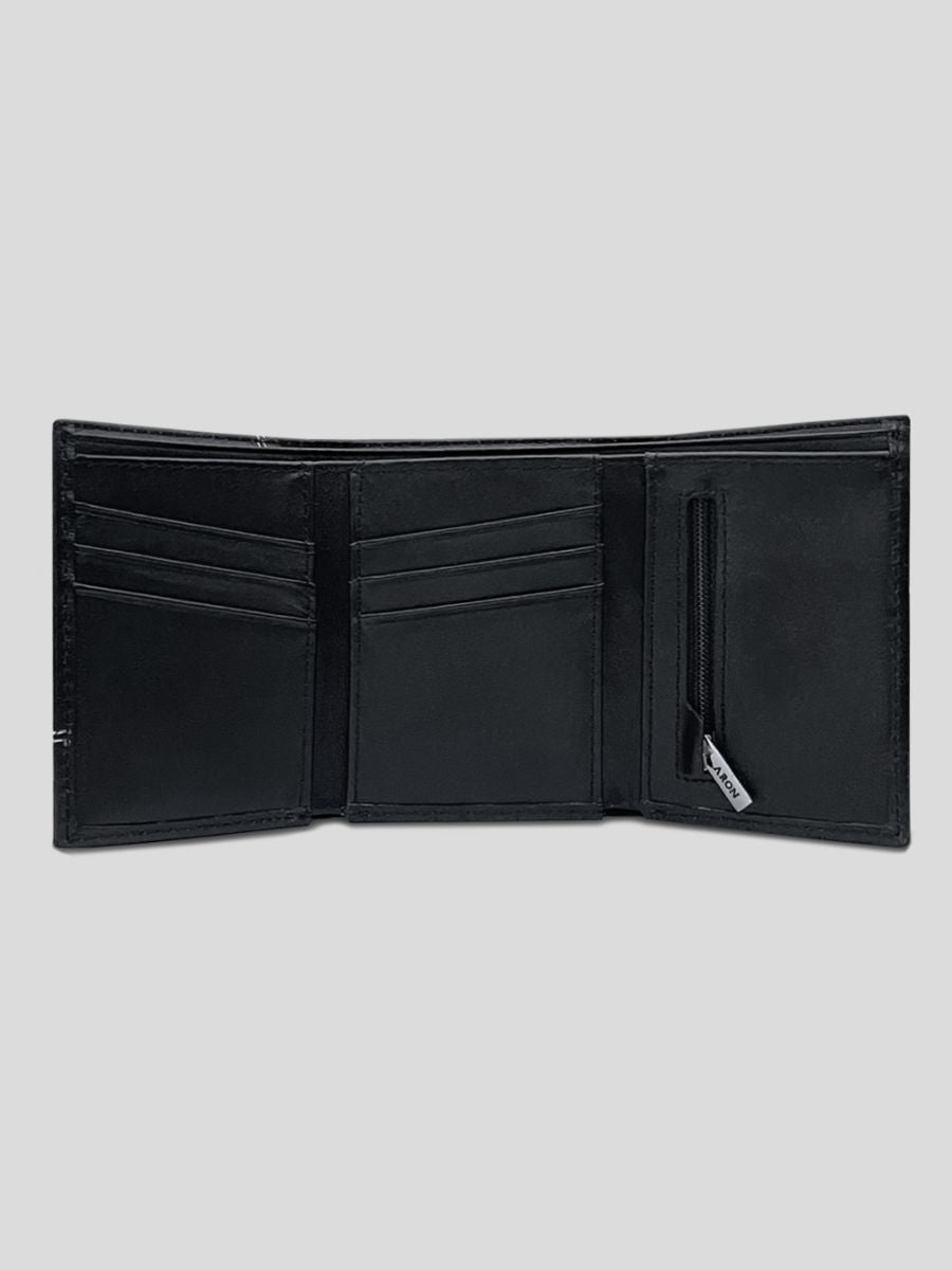 Elegancia en su máxima expresión. Billetera en cuero vacuno premium, con una textura natural que realza su autenticidad. Forro de poliéster, espacio para tarjetas, billetes y sencillera, y accesorios metálicos en acabado níquel para un toque sofisticado y duradero.