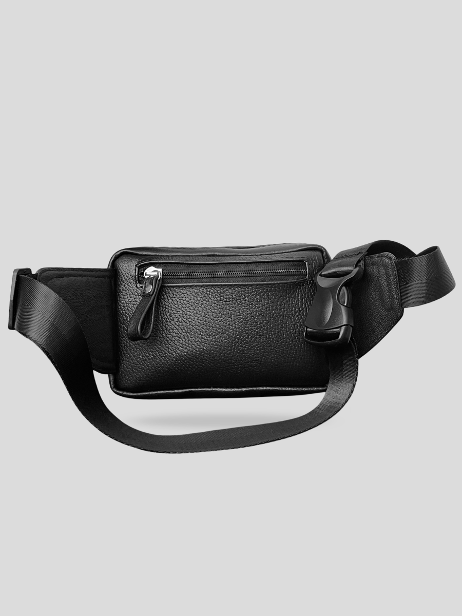 - Un compartimento principal con cierre para llevar objetos esenciales como billetera, celular o pasaporte.