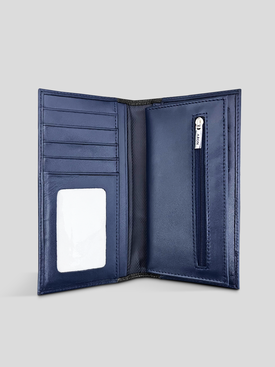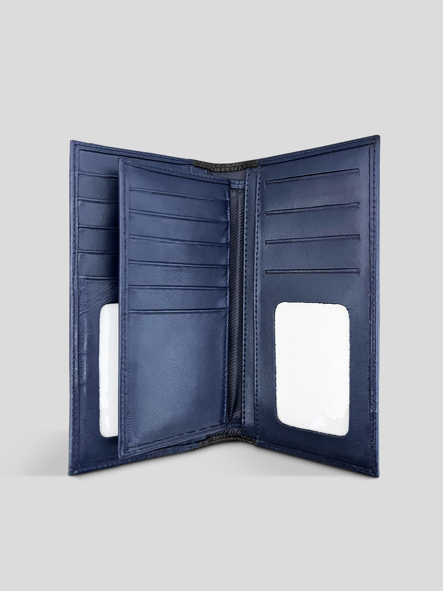 Chequera de cuero, poseedor de un diseño fresco, moderno y masculino. Los acabados de este modelo reflejan las grandes habilidades de nuestros artesanos en este diseño espectacular. Tiene múltiples espacios para billetes, documentos, tarjetas y monedas.