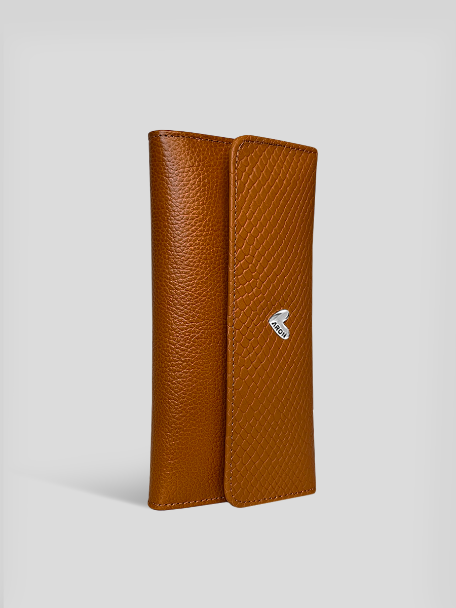 El complemento ideal para tu día a día. Elaborada en cuero vacuno con una combinación de tonos, ofrece un estilo moderno y versátil. Su diseño compacto garantiza comodidad, mientras que su interior está diseñado para organizar tarjetas y billetes de forma práctica. Hecha en Perú por maestros artesanos.