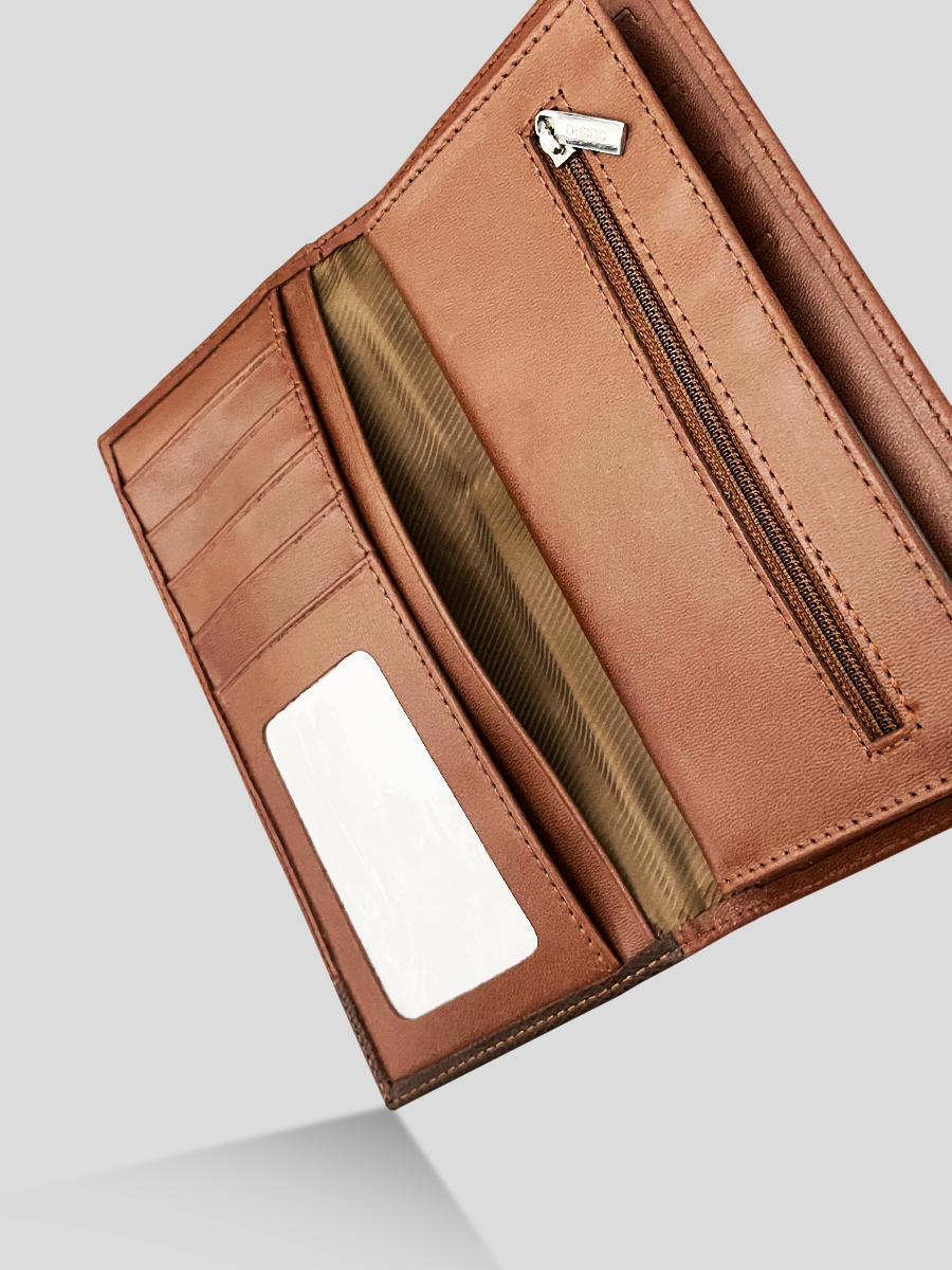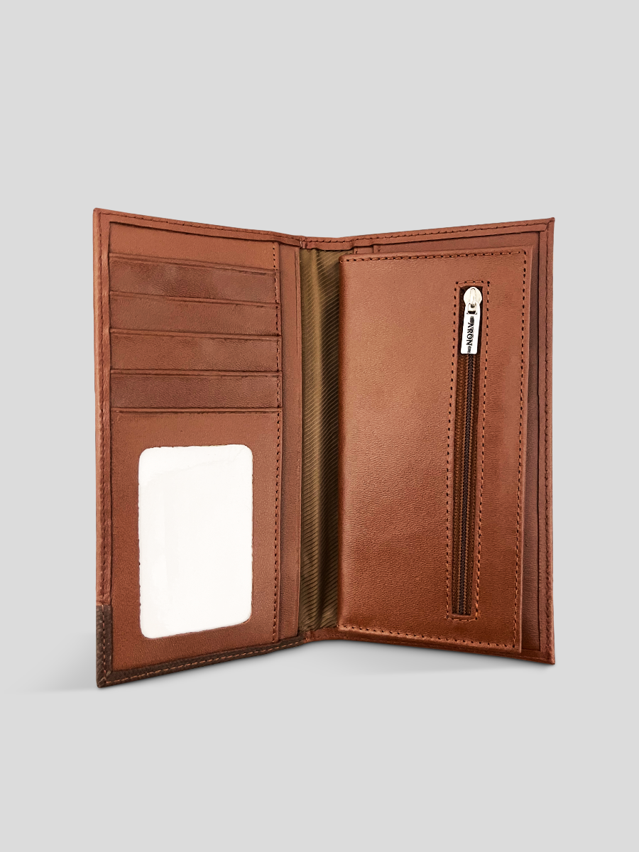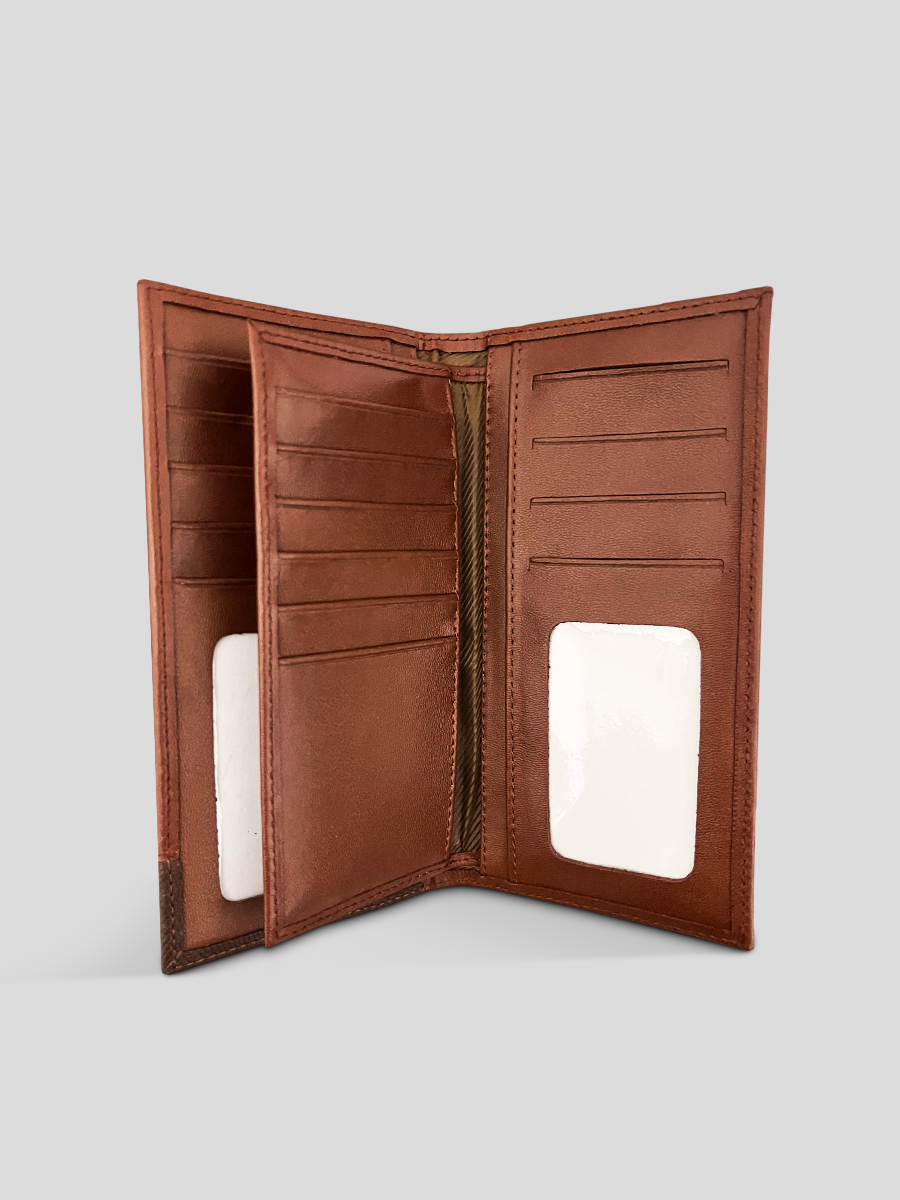 Chequera de cuero, poseedor de un diseño fresco, moderno y masculino. Los acabados de este modelo reflejan las grandes habilidades de nuestros artesanos en este diseño espectacular. Tiene múltiples espacios para billetes, documentos, tarjetas y monedas.